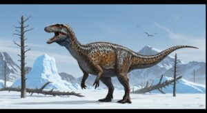 カルノタウルスの化石には、皮膚の跡が残っていました。これにより、体表が小さな骨の粒やうろこで覆われていたことが確認されています。特に背中や側面には、直径数センチの突起が点在しており、これが防御や体温調節に役立っていた可能性があります。